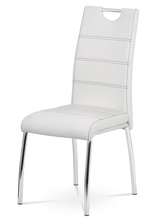 | Název: | Jídelní židle, potah bílá ekokůže, černé prošití, kovová čtyřnohá chromovaná pod |