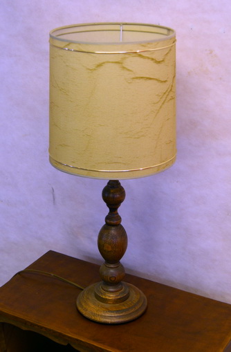 Stolní lampa s bílým stínítkem z masivního dubového dřeva, výška 72cm, šířka stínítka 50cm, vypínač…