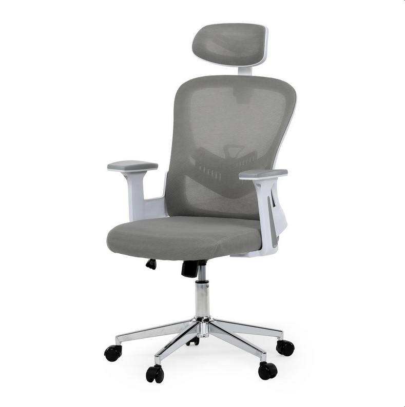 | Název: | Kancelářská židle, šedá síťovina, bílý plast, kolečka na tvrdé podlahy, 2D područky |