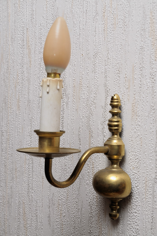 Mosazná lampička na stěnu bez stínítka, výška 27cm, hloubka 15cm
