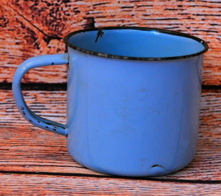 Modrý smaltovaný hrnek plech