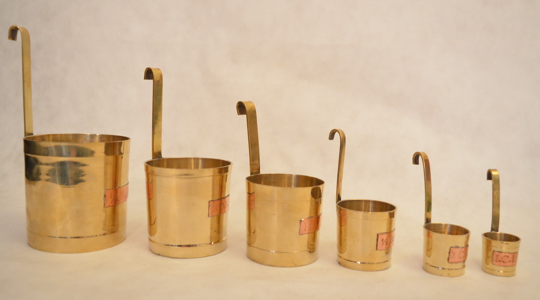 Mosazné závěsné odměrky kuchyňské 6ks