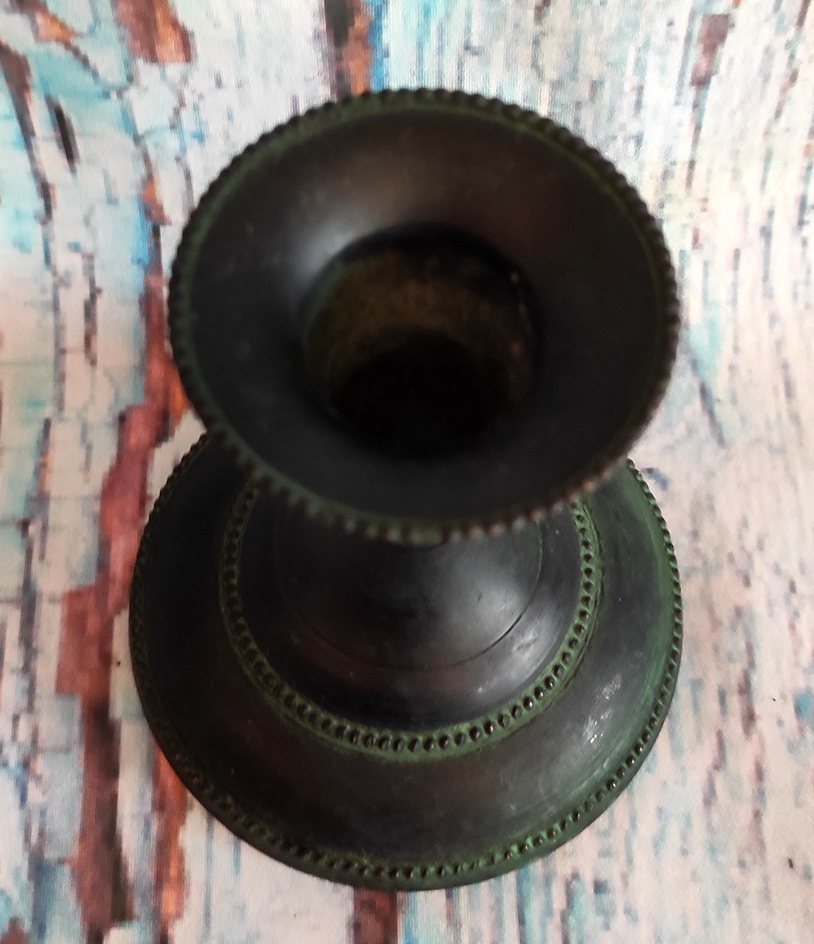Svícen mosaz dřevo vějíř