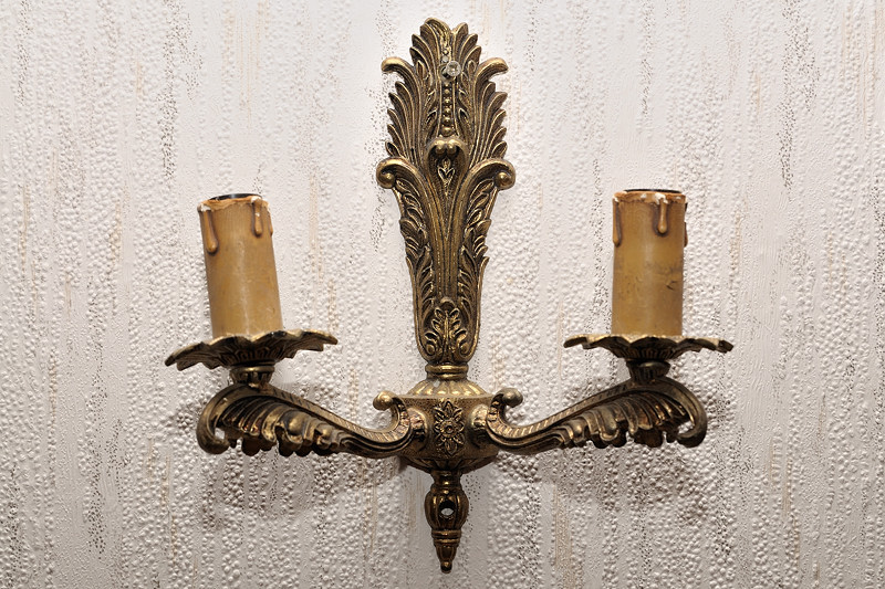 Mosazná nástěnná lampa svícen zlatá párová