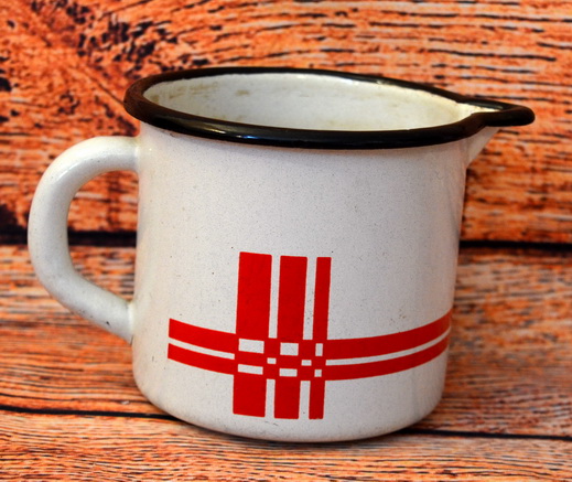 Plechový hrneček smaltovaný 11cm šířka, výška 10cm, skladem 1ks
