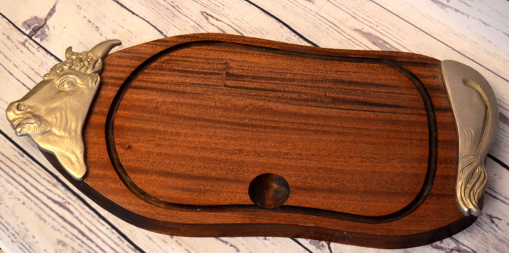 Rustikální dekorační ale plně funkční krájecí deska s motivem krávy, rozměry 56x25x2cm, skladem 1ks. Skladem máme také podobný, s motivem vepříka