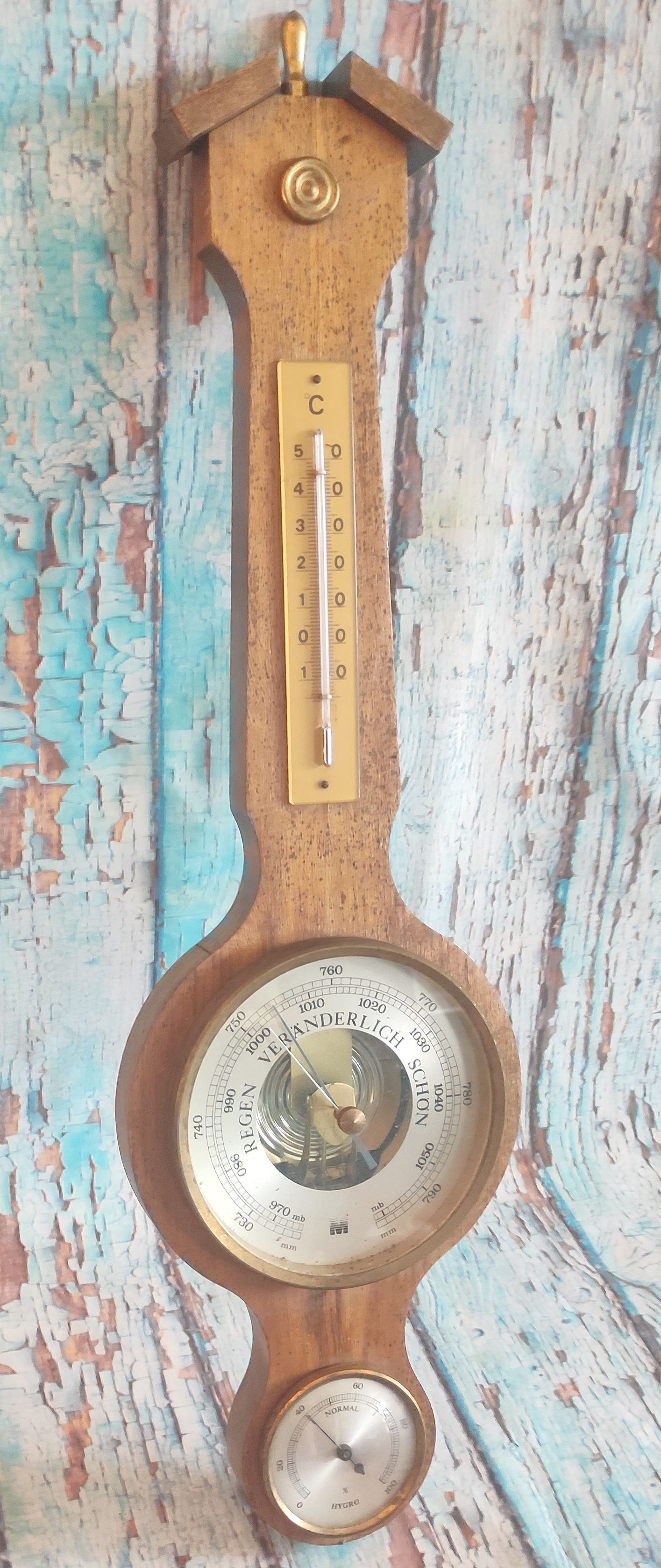 Barometr velký tmavý rustikální dřevěný, rozměry 54x17x4,5cm, skladem 1ks