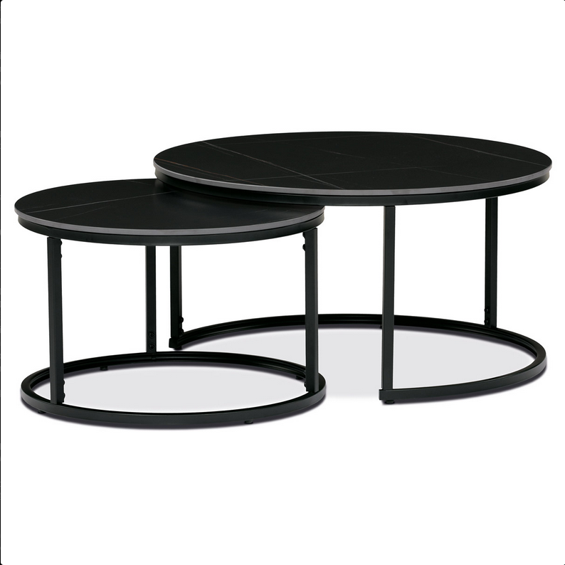 | Název: | Sada 2 konferenčních stolů ø80 a ø60, černá keramická deska, černé kovové nohy |