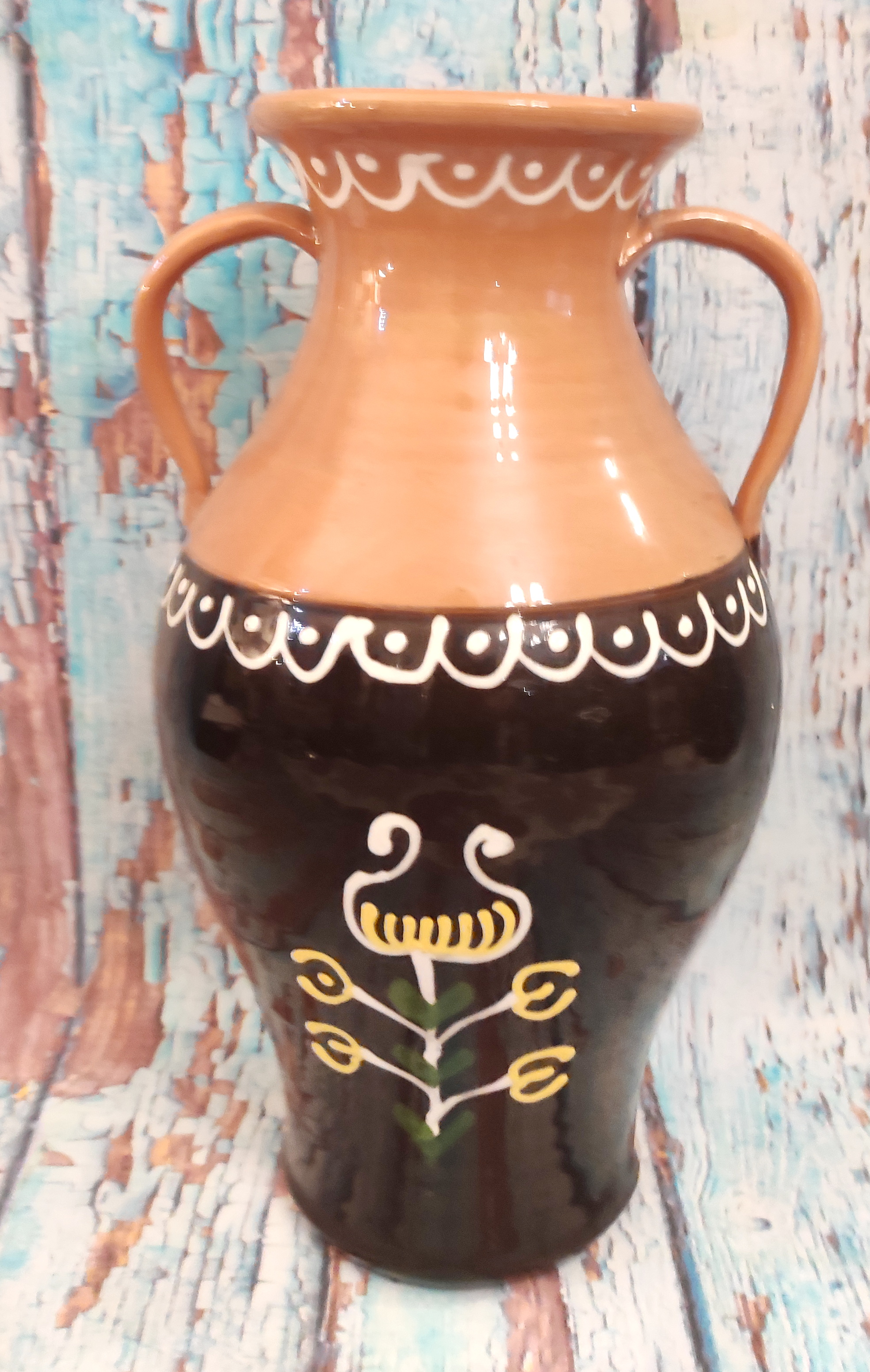 Selská keramická váza malovaná