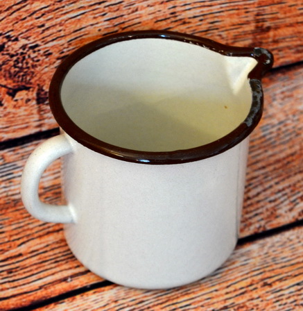 Plechový smaltovaný hrnek 12,5cm šířka, výška 12cm, skladem 1ks