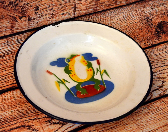 Plechový smaltovaný hrnek 12,5cm šířka, výška 12cm, skladem 1ks