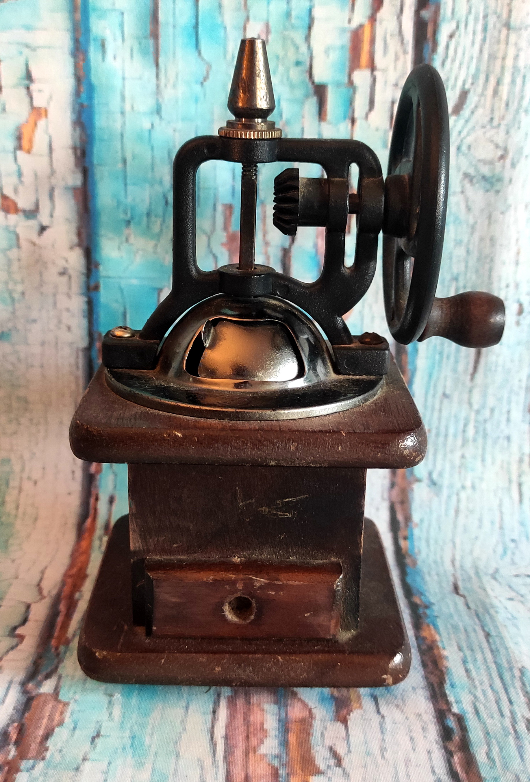 Starožitný dřevěný mlýnek na kávu