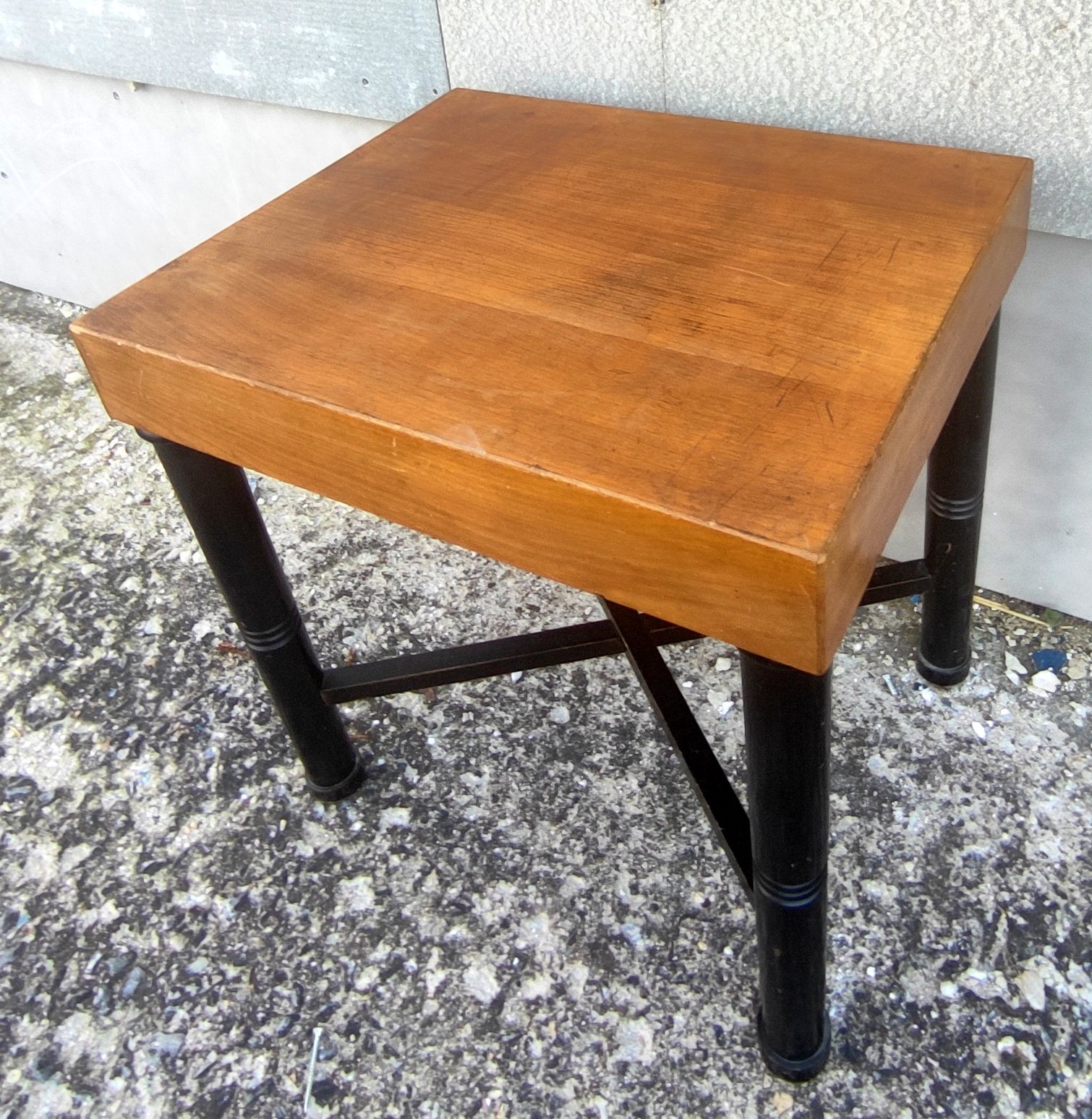 Dřevěný květinový stolek z masivního dřeva, v kombinaci s mosazí, výška 46cm, šířka 23cm, skladem…