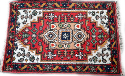 Indický ručně vázaný vlněný kobereček, rozměry 60x40cm